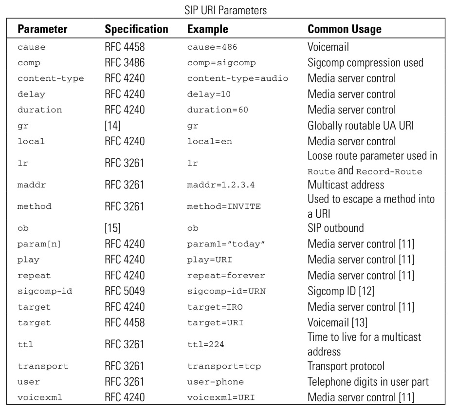 下图是 sip url 参数列表: 比较重要的有