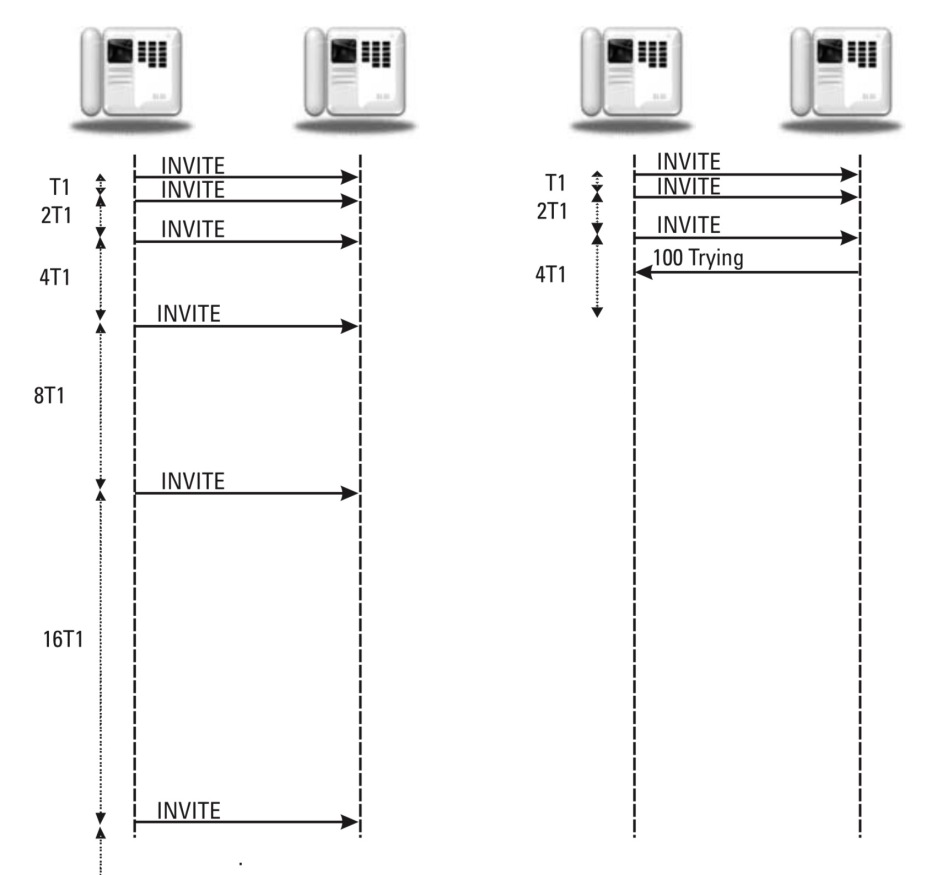 - 如果中间收到了1xx的消息,则计时器立即将周期设置为T2, 并在T2过期时再次重发