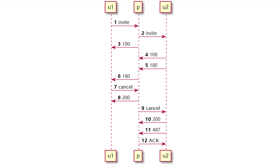 - cancel的CSeq和branchId和上一个invite一致 一般的cancel请求处理图