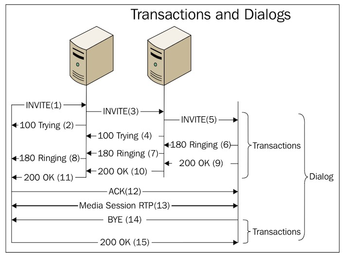 - 第三层:事务层 事务是一个请求和最终的响应称为一个事务,例如invite, 200ok是一个事务