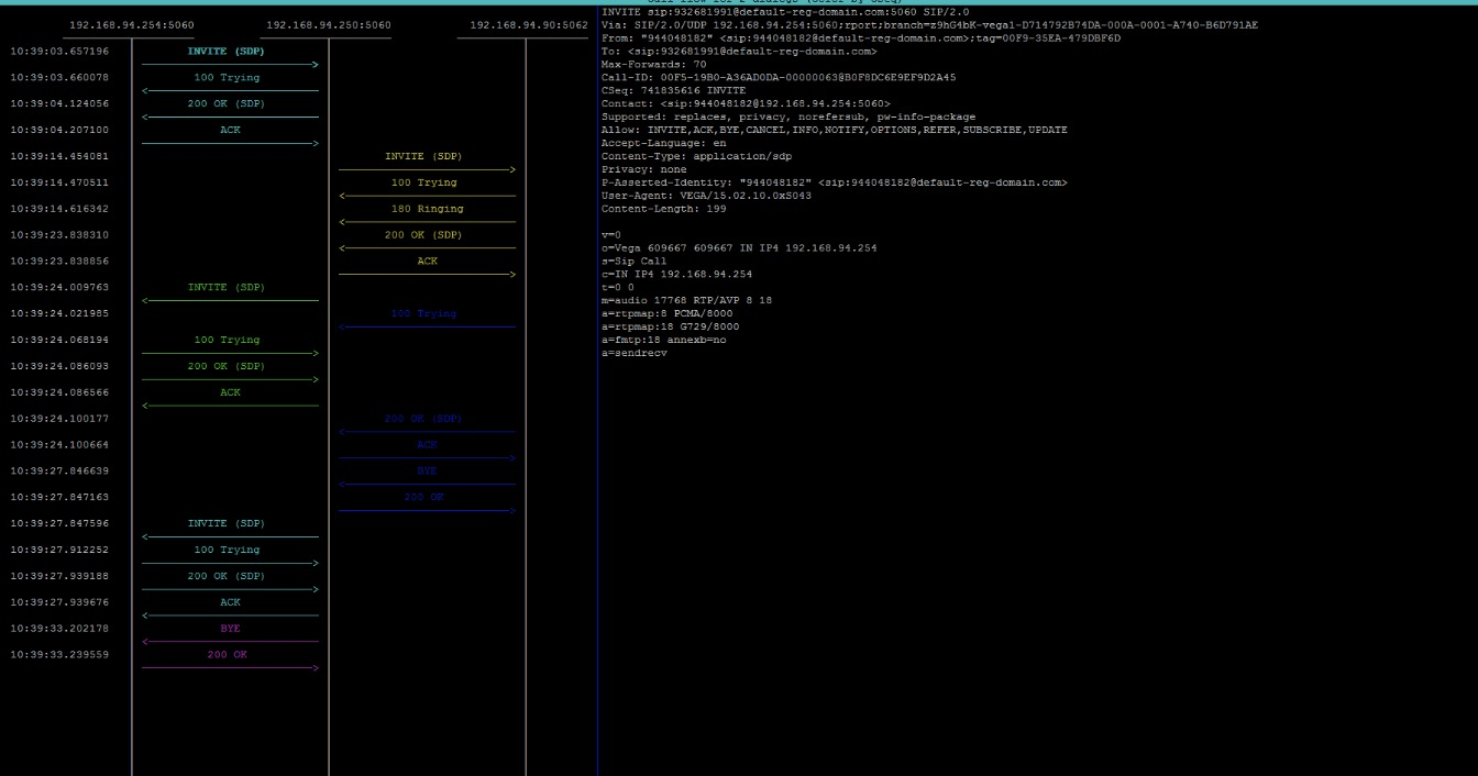 - sngrep只能捕获本机网卡的收到和发送的流量。假如ABC分别是三台独立虚拟机的SIP服务器,在B上抓包只能分析A-B, 和B-C直接的流量。