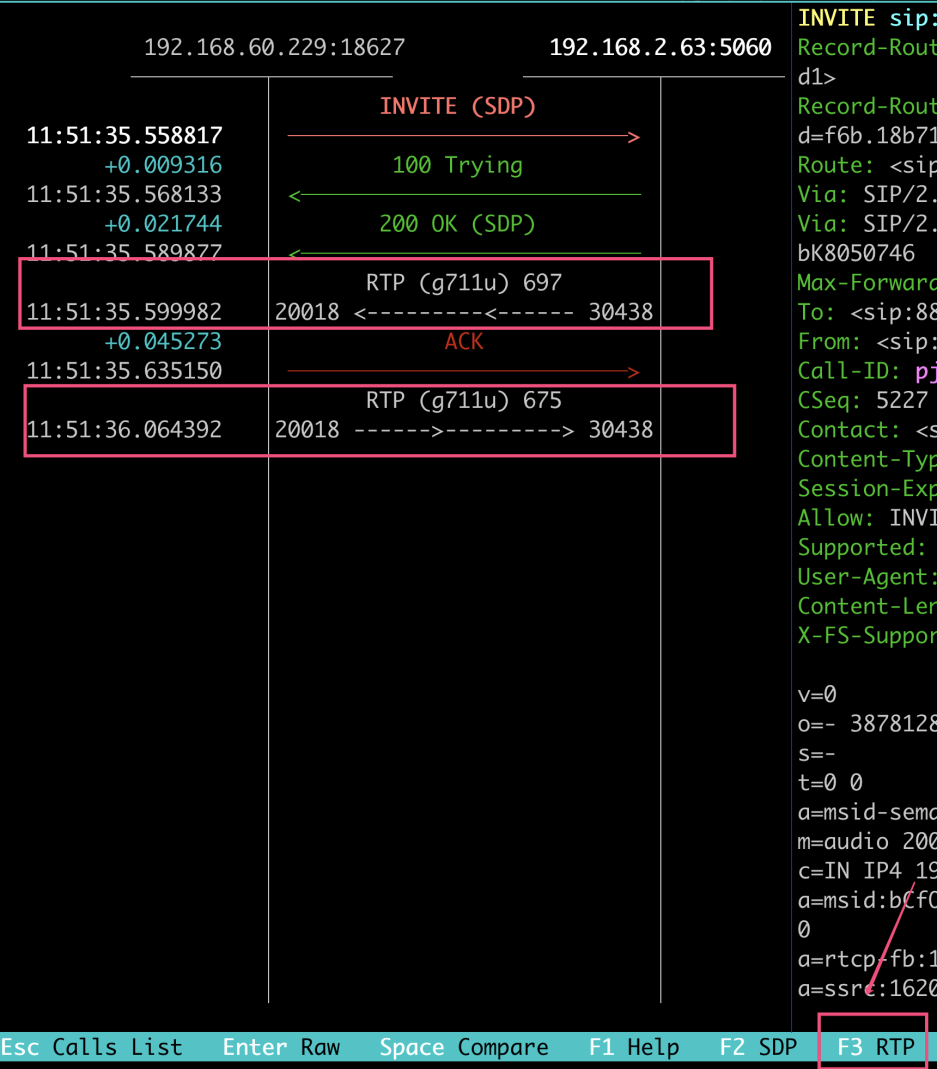 - F6 or R: 显示原始的sip消息
