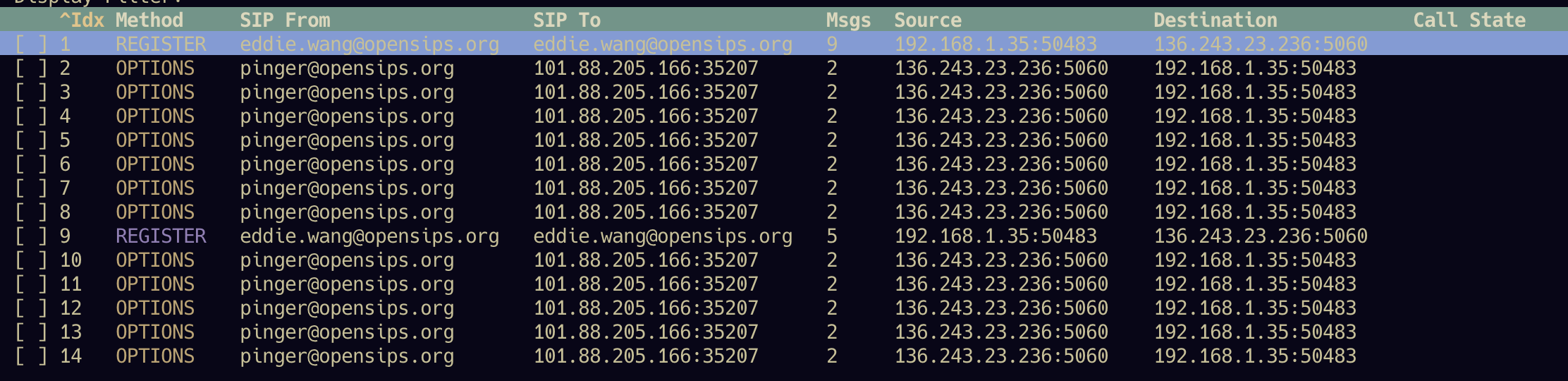 -c --calls Only display dialogs starting with INVITE