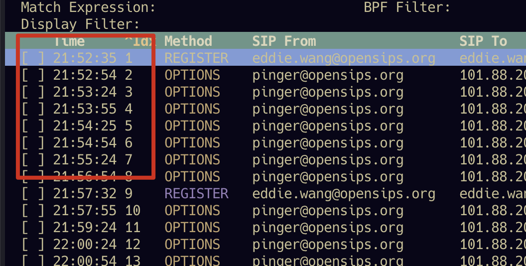 - 再次强调:sngrep不适合长时间抓包,只适合短时间抓包分析问题。如果你需要记录所有的sip消息,并展示。可以考虑使用siphub,或者homer。