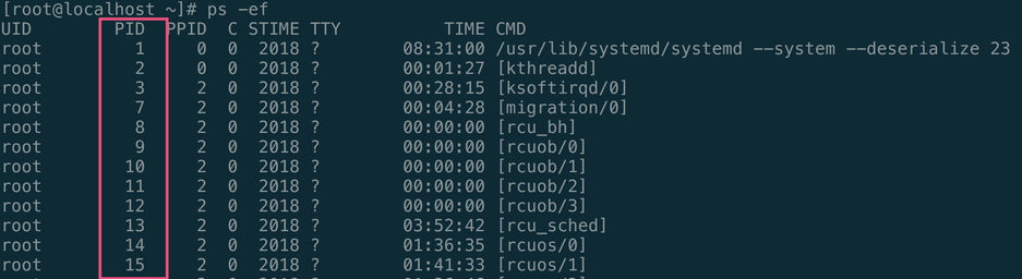 UID PID PPID C STIME TTY TIME CMD