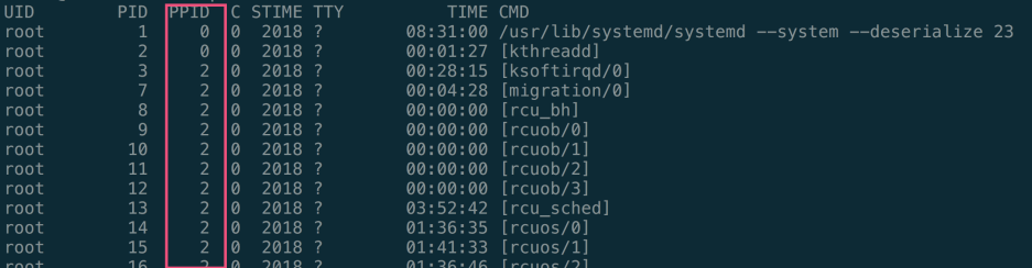root 2 0.0 0.0 0 0 ? S 2018 0:44 [kthreadd]