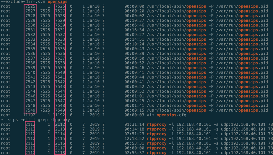 ➜ 2118 ps -em -o pid,tid,command | grep rtpproxy -A 10