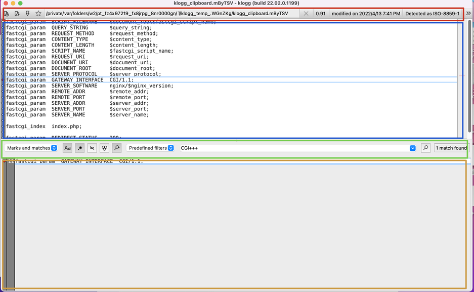 - 将日志文件拖动到klogg中