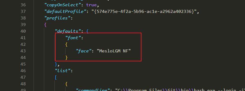 用vscode打开对windows termial的配置json文件,在profiles.default.font中配置如下字体