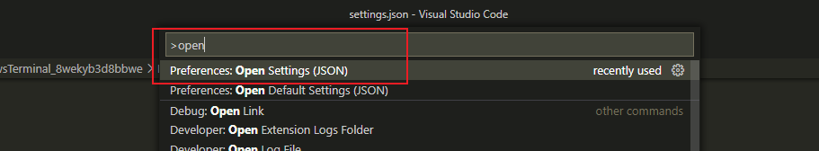 在vscode中输入 Open Sett, 就可以打开设置的json文件。