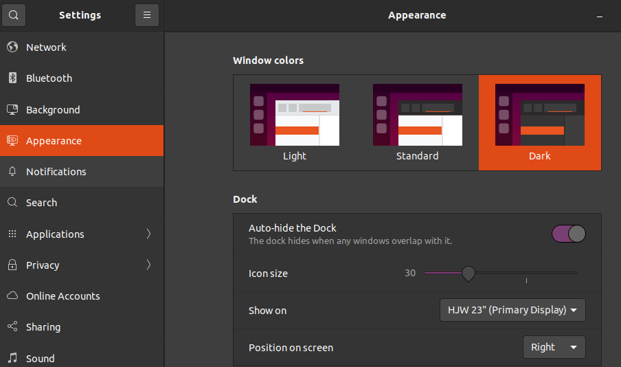 所以说,既然选择ubuntu了,就没必要搞些花里胡哨的东西。ubuntu默认的主题挺好看的,而且支持自带主题的设置,就没必要再折腾了。