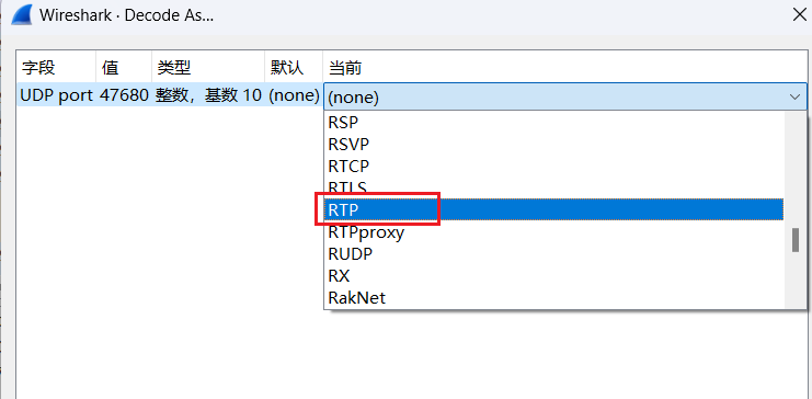 假如有很多的UDP包,并且端口都不一样,如果想把这些包都解码为RTP, 则需要如下设置。