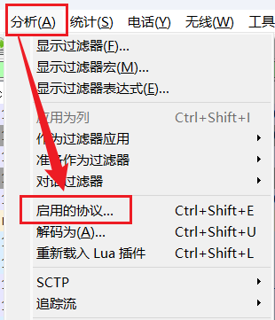 选择分析->启用的协议